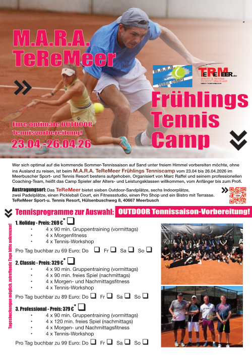 Seit über 25 Jahren steht das M.A.R.A. Tenniscamp für Tradition, Qualität und Erfahrung aus einer Hand. Marc Raffel, Diplom Sportlehrer und DTB A-Trainer, bietet gemeinsam mit seinem erfahrenen Team in den kommenden Osterferien 2026 vom 28. März bis 4. April (1 Woche) bzw. 28. März bis 7. April 2026 (10 Tage) wieder das erfolgreiche Mallorca Tenniscamp in Cala Millor an.